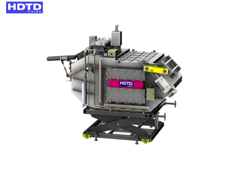 熱室機配套設施鎂合金爐的機殼及後蓋板等附注均選用不鏽鋼加工。美觀大方、耐溫性和防腐蝕好。投料口選用翻板加雙翹板橫拉形室。即投料時要橫拉板(這時的張口較小), 扒渣時把全部翻板(連在橫拉板)一塊兒旋轉(這時張口較大)。